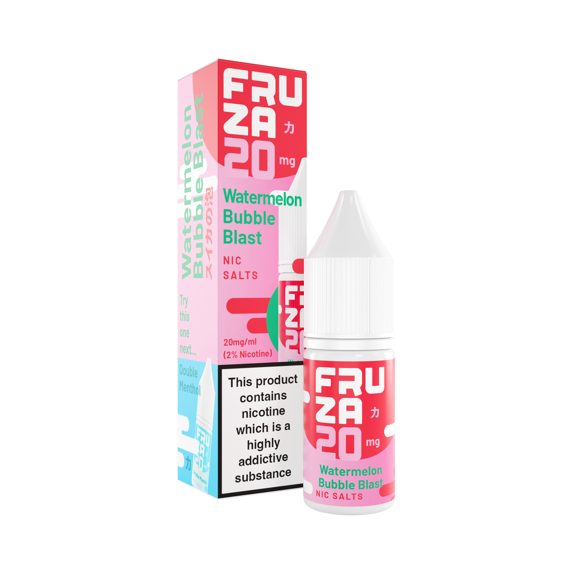 Watermelon Bubble Blast from Fruza is available in 50/50 Nic Salts across 5mg, 10mg & 20mg nicotine strengths in a 10ml bottle size.
