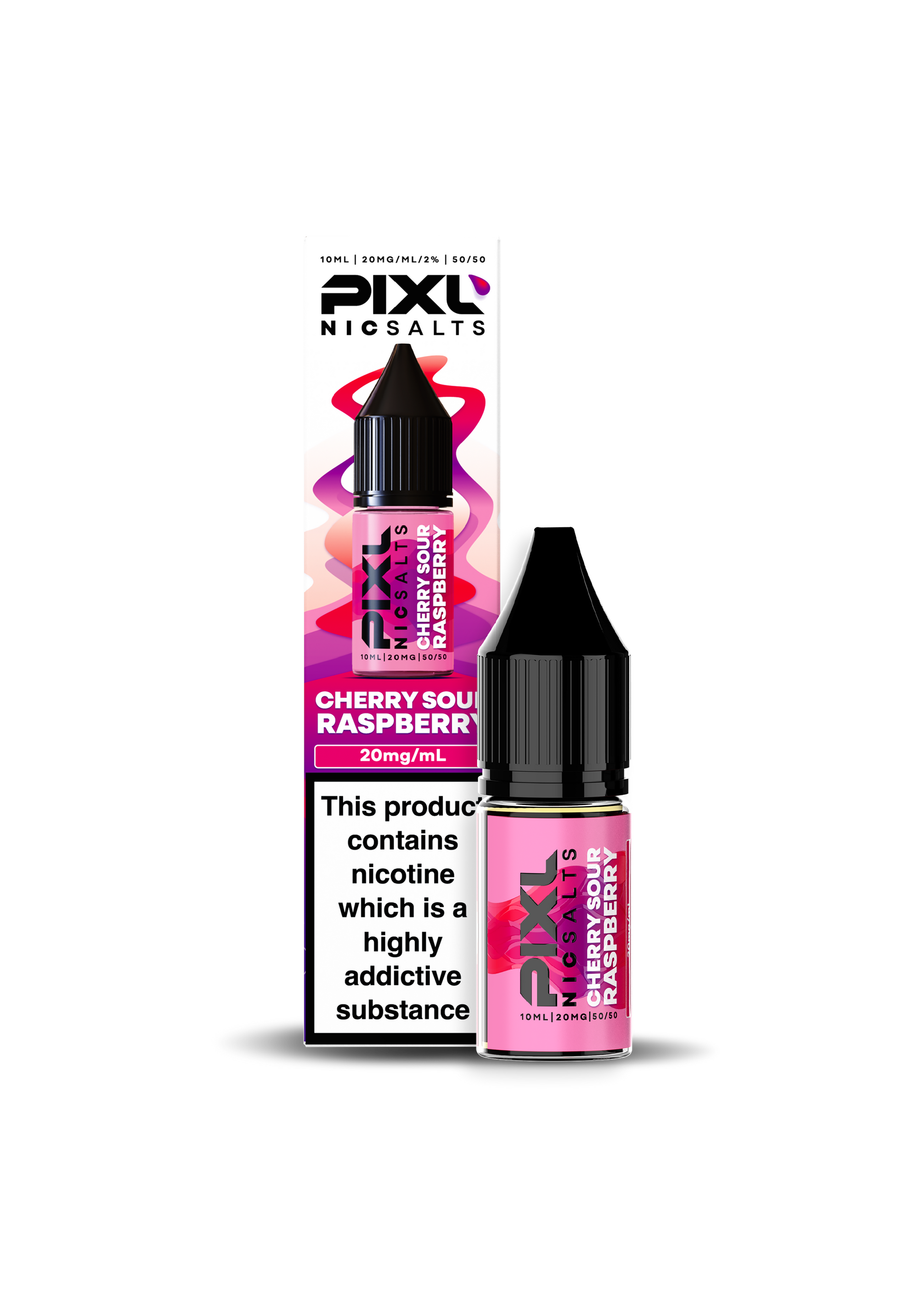 Pixl Salts Cherry Sour Raspberry 50/50 E-liquid in a 10ml bottle size designed for MTL & RDL vaping.