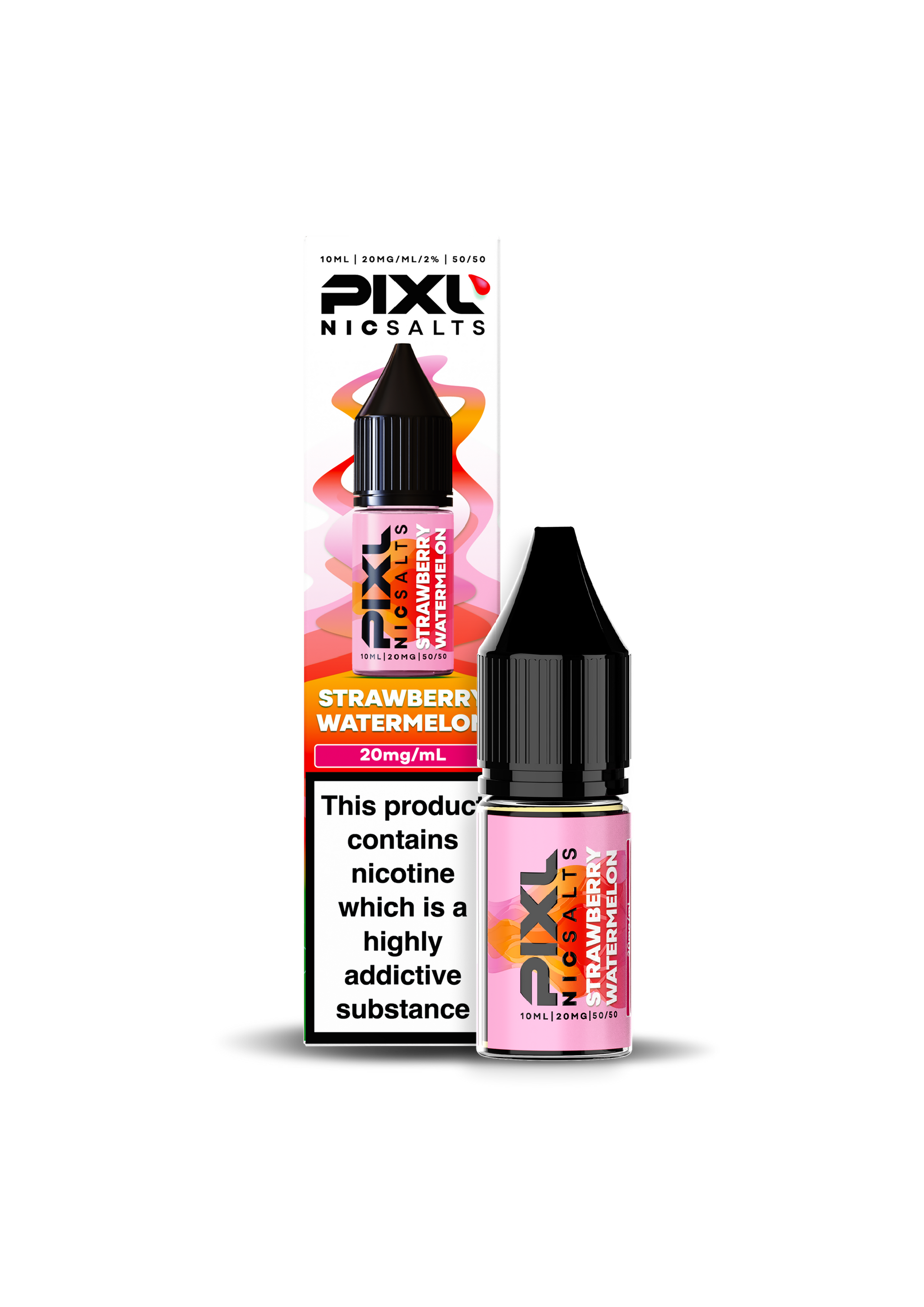 Pixl Salts Strawberry Watermelon 50/50 E-liquid in a 10ml bottle size designed for MTL & RDL vaping.