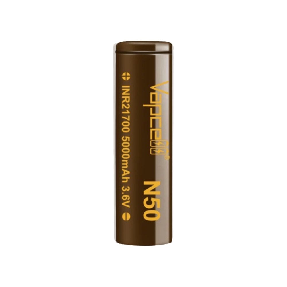 N50 5000mAh 21700 INR Battery with a 15A max continuous discharge current from Vapcell. This is the best option for dual 21700 regulated devices that are intended to be run under or around 70 watts or a single battery regulated device under 50watts.